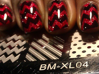 In a rare case of outfit planning, I wanted my nails to match my blouse for the next day, so chose the stamping pattern to match.