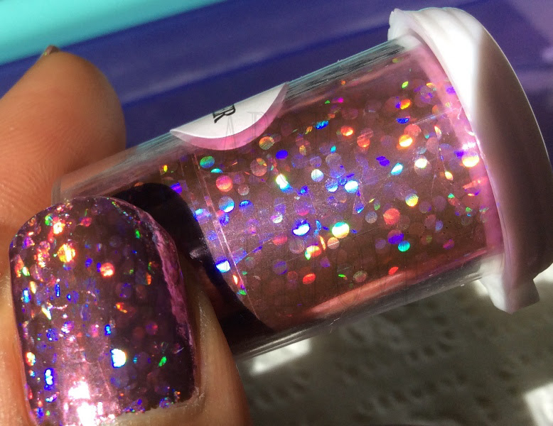 I have so many of these nail foils laying around so I figured it was time to use one. This mani started with a base of 1 coat of Jade - Aurora. After it dried completely I applied the foil and topped it with a gel topcoat so as not to ruin the foil finish..