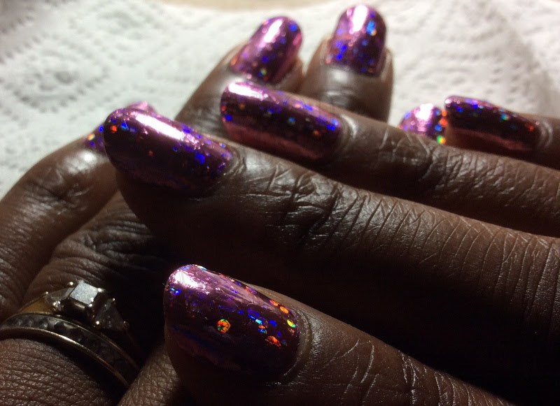 Holographic polish two different ways. I couldn't resist wearing them together just because...