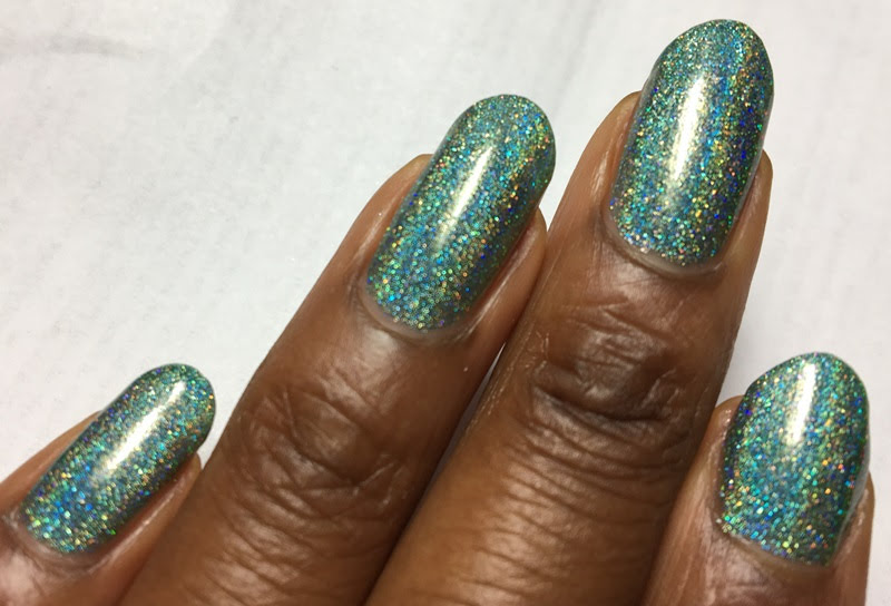 This one was a little gritty without topcoat, but it absolutely shines once the topcoat is one. I particularly like that it doesn't have just holographic glitter in it, but interesting flakes as well.