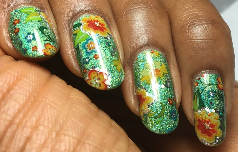 Since this is one of my favorite hues of green, it was bound to be a winning mani no matter what I did with it. I like the finished look with the foil.