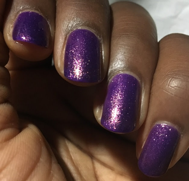 I'm sort of on the fence with this one - I love the color and finish in the bottle but felt kind of "meh" about it on my nails. Looking at the photos it looks pretty nice on me, so I'm not sure if they reflect what it really looked like or if I was just having a non-purple day. :)