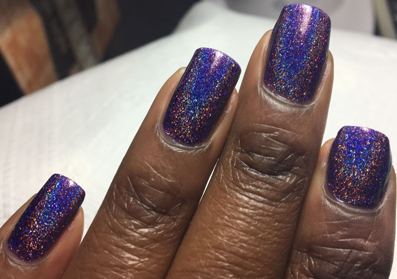 It's so refreshing wearing a rich-colored holographic polish. Distracting too... :)
