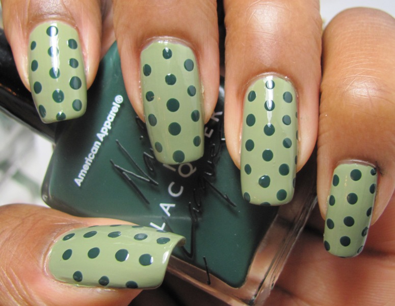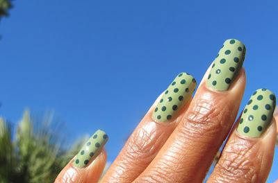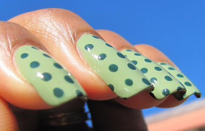 Excuse the bumpies - my base coat is thickening. Also, polka dots done in AA - Hunter.