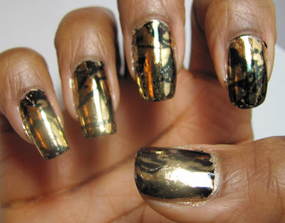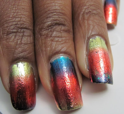 I know I've mentioned her in my last posts about foils, but Enamel Girl's foils manicures are really amazing. I decided to link to her posts on foils - click HERE to see them (yaay for her labeling her posts!). She has foils from multiple sources AND includes a tutorial post that's helpful.