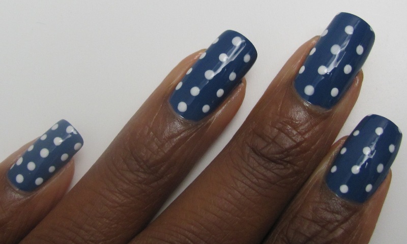 COMMENTS: Gorgeous 1-coat blue. It was difficult to photograph, so these photos aren't the best of the lot, but are the closest I could get to the real color. Oh, and of course we've got some dots - smaller ones and more spaced out.