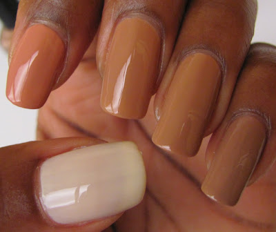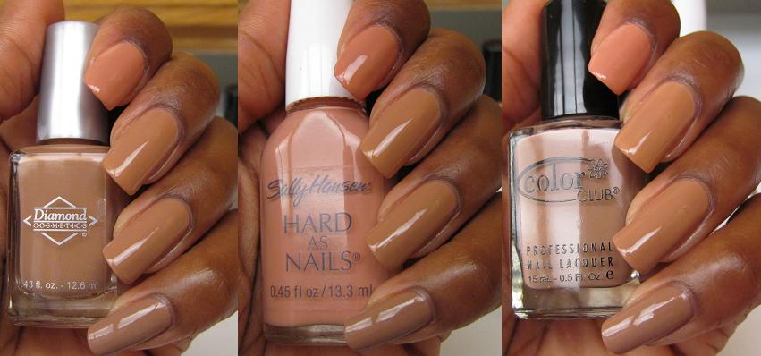 After wearing this color, I realized I had at least two others in the same family: Sally Hansen Hard As Nails - Toffee and Color Club - Best Dressed List.