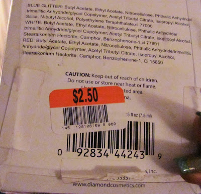 First, has anyone seen these striping polishes? I would have passed on them, but I noticed that they were made by Diamond Cosmetics, so figured I would give them a try.