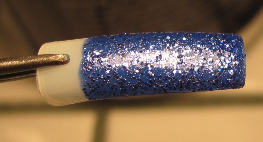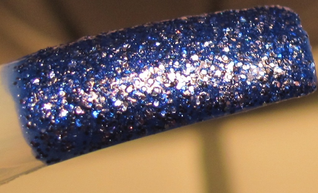 Comments: This is a beautiful rich blue. Cleanup was a pain because it was so pigmented! Either way, this is the color I chose on my right hand as a base for the blue glitter franken.