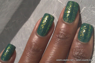 I received a surprise package from Jossie in the mail last week. In it were three Zoyas in green - one of my favorite colors! Zoya Edyta is a polish that I admired often but never actually purchased. Well, thanks to Jossie, here it is! It has a lot of beautiful gold shimmer in it, but I wanted even more, so I put a layer of NDB - Golden Bikini over it.