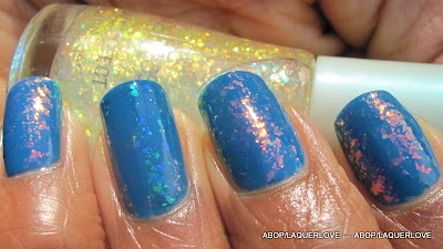 COMMENTS: I realized I have been seriously neglecting the holographic polishes in my collection and so decided to enjoy these over the weekend. Once again, I think I prefer scattered holo to superfine linear holo. The latter are just so dull when there isn't lots of light bouncing off them, which is most of the time. I added some glitter on the tips to liven this mani up indoors.