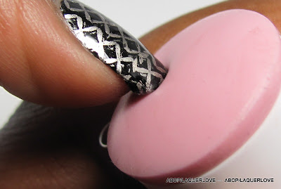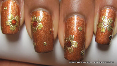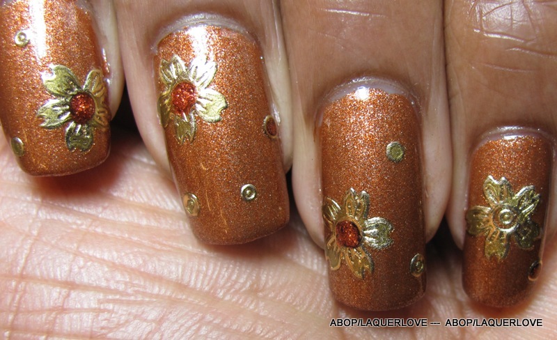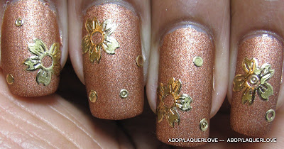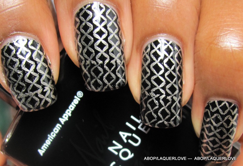 COMMENTS: American Apparel - Hassid with stamping done in Sally Hansen Chrome - Copper Chrome. I got the new Bundlemonster plates and with all the gorgeous new full-nail patterns, I was hoping some would fit. Nope, apparently I have gargantuan nails because this pattern only fit on my pinky completely. I had to turn it sideways and double stamp on the rest of my nails.