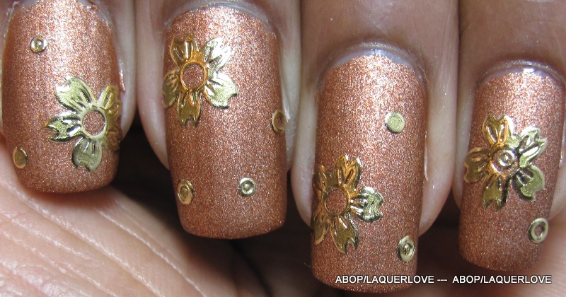 SOURCE: American Apparel Store, Flaky topcoat made from Covergirl Boundless Color - Pink Twinkle and multiple Golden Rose Scale Effect polishes.