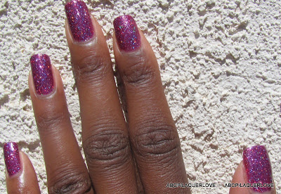 COMMENTS: I've had the mani from my last post on since Monday night. It's not that I don't want to change the color on my nails, and I definitely had the time to do so, but this is just too pretty! Well, here it is again - in the sun this time. I was outdoors doing decoupage for the first time on a table and realized it was the perfect opportunity to take more photos of this beautiful polish. Thanks again Chris. Know that I'm thinking of you!