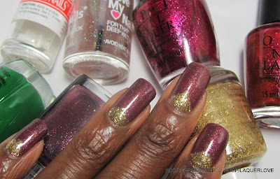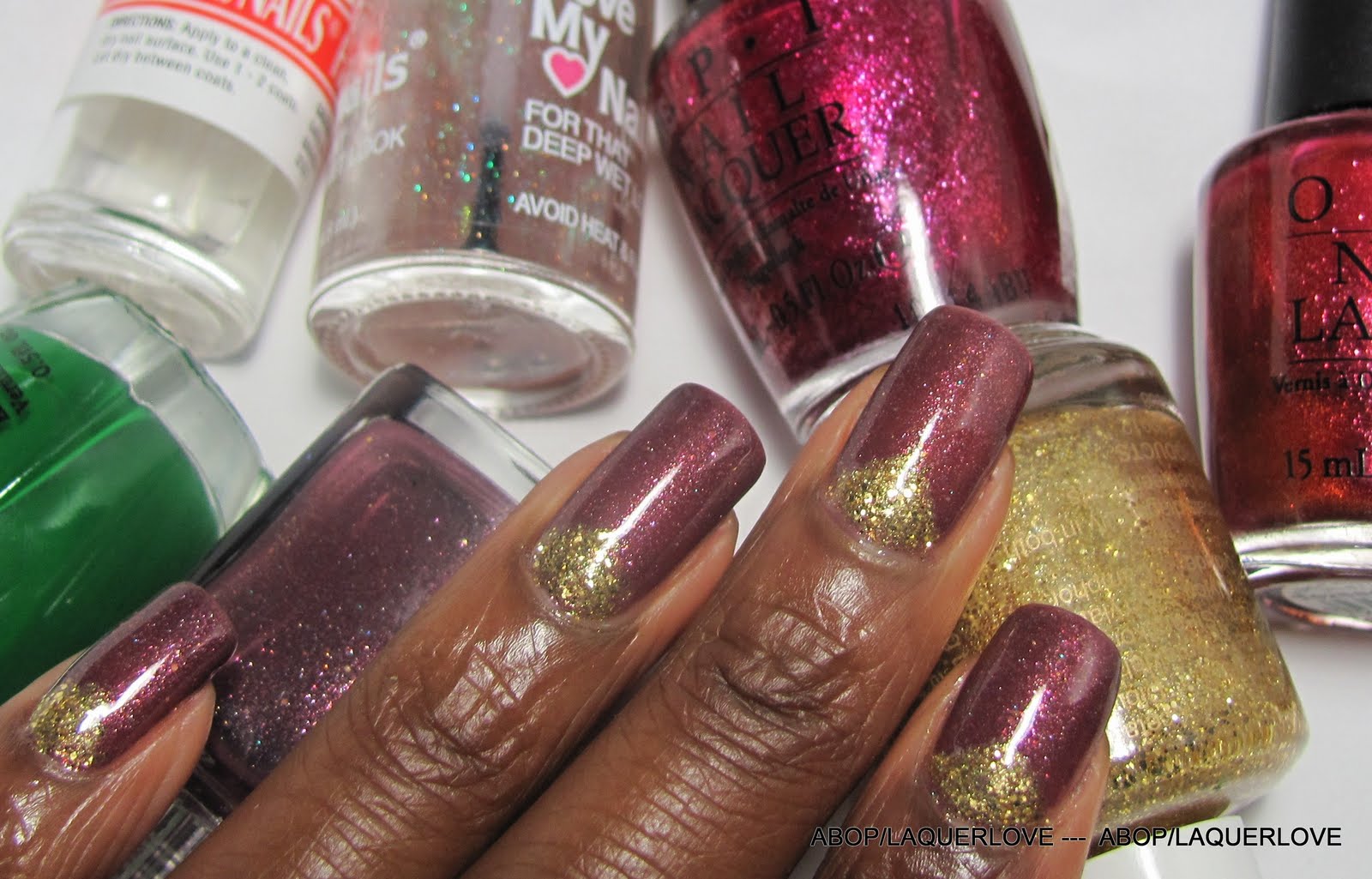 COMMENTS: I was looking at the two red-based OPIs that I didn't like so much and decided I wanted to franken with them. This is what I ended up with! The color looked a little muted on me, so I added blingy triangles at my cuticles with NDB Golden Bikini. What do you think?