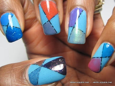 .. with my previous mani before removing it. I'm not sure about the colors, but I'm liking the patchwork look.
