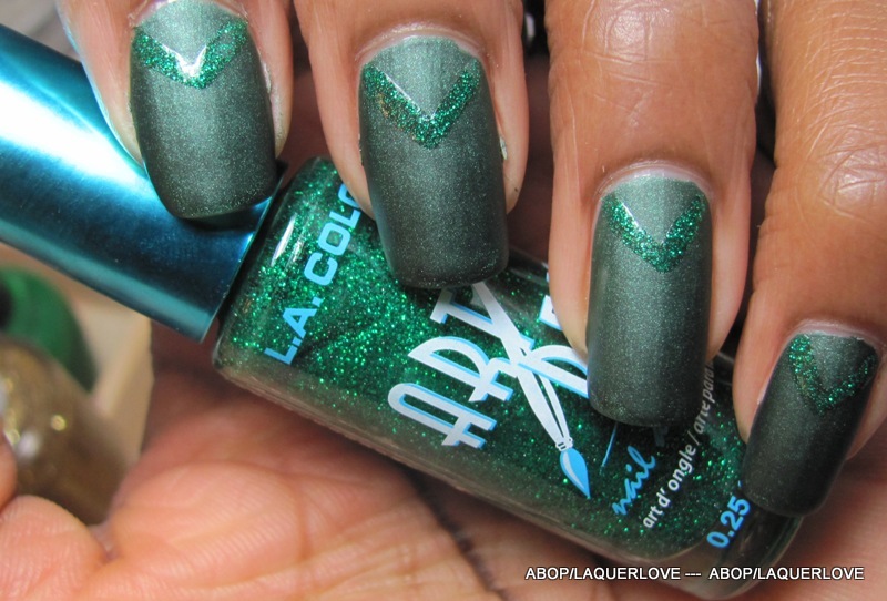 SOURCE: ABOP Franken composed of: LA Colors Color Craze - Static Electricity (BCC 569) and Energy Source(BCC 561), and black microglitter from TKB Trading