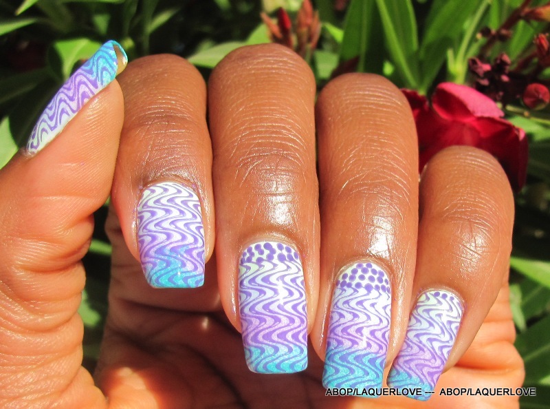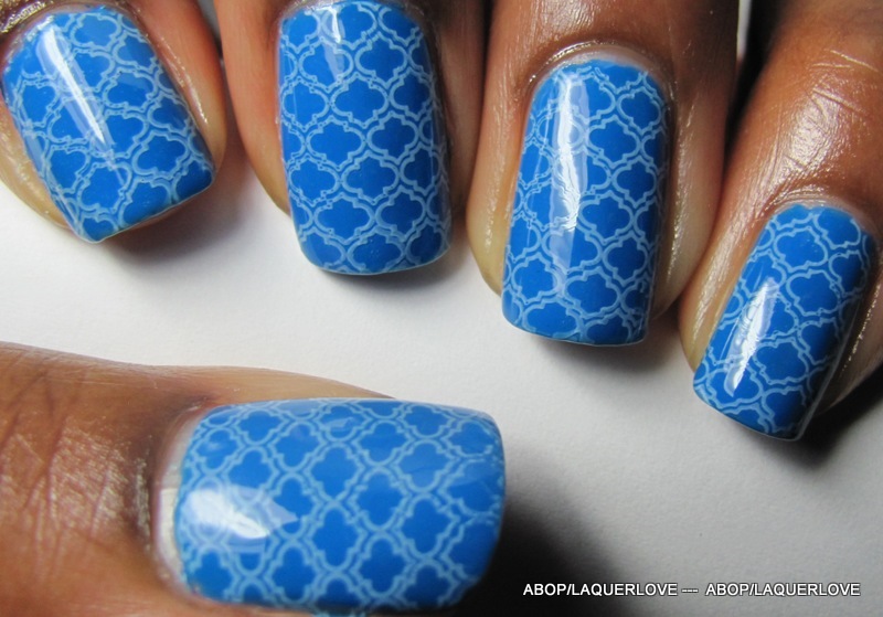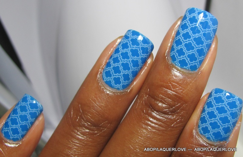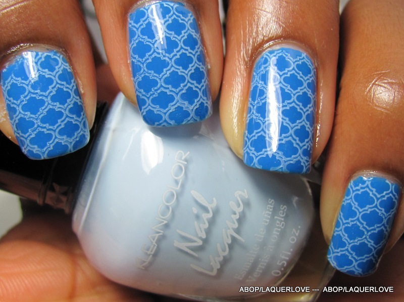 Went to the gym, came home, and stamped over it with my Magnonails plate (yaay for short nails, I can finally cover them completely with the XL stamps!) in Kleancolor - Pastel Blue.