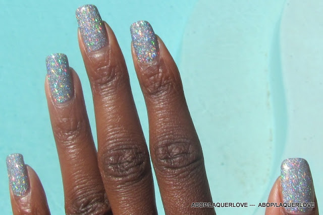 COMMENTS: To clarify - My thumb, middle, and pinky fingers have 1 coat Holla Glow, 1 coat other holo glitter franken. Index and ring fingers are 2 coats of Holla Glow.