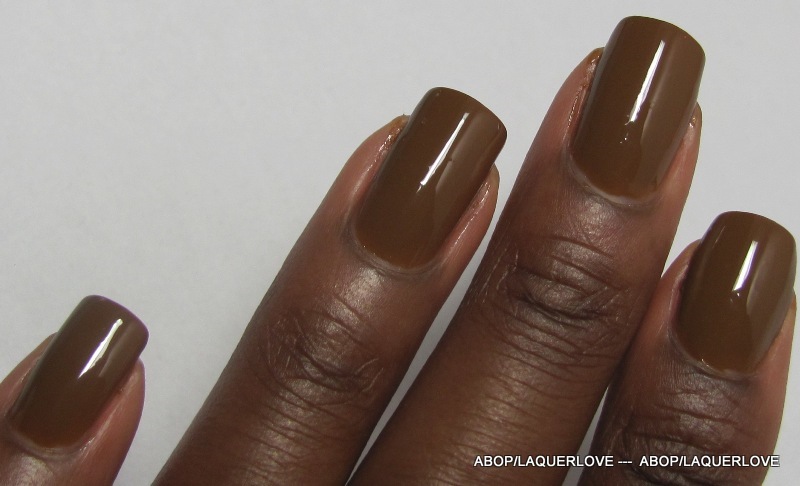 COMMENTS: When I saw Jossie wear this one on her blog, I just had to wear mine for my next mani! Such a gorgeous earthy brown with a hint of yellow. It's a unique color that I love! I did my tips in Fingerpaints - Catwalk Queen because it seemed like the perfect complement. The combination reminds me of a purse or pair of shoes - some kind of dark leather with contrast piping.