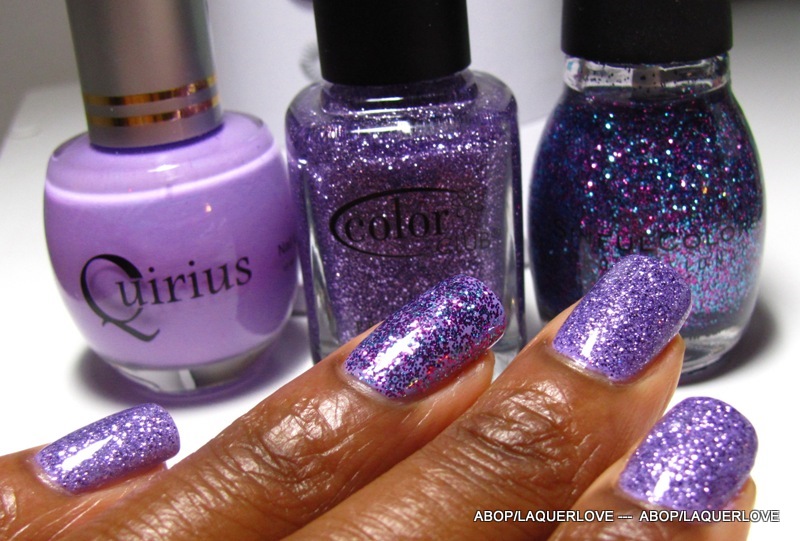 I rediscovered this purple glitter while going through some of my Color Club lacquers, so chose to do a manicure with it. I used a similar base color and decided to make an accent nail with the Sinful colors glitter.