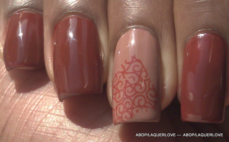 Another "oldie but goodie" nail polish, Suede Shoes was just one coat! I think it may be because it has thickened up over the years, but I was happy to have a quick manicure. The stamping was done with a pattern from my Magnonails XL plate D. (There is now a US seller on Amazon offering plates with the same patterns. I have not purchased anything from this seller, but wanted to let you know anyway)