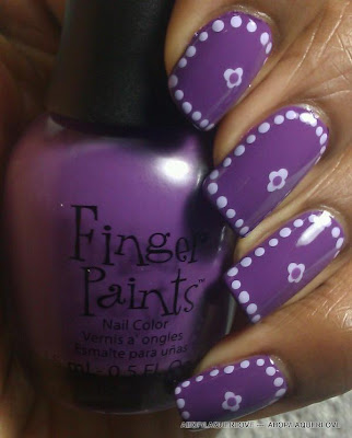 I loved the dots in my previous manicure and decided to reproduce them in this one. The dots here are done in Fingerpaints - Aren't you Gladiolus and Fingerpaints - Lavender Highlight.