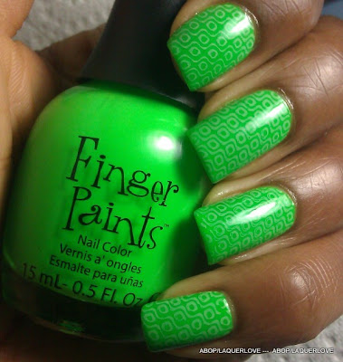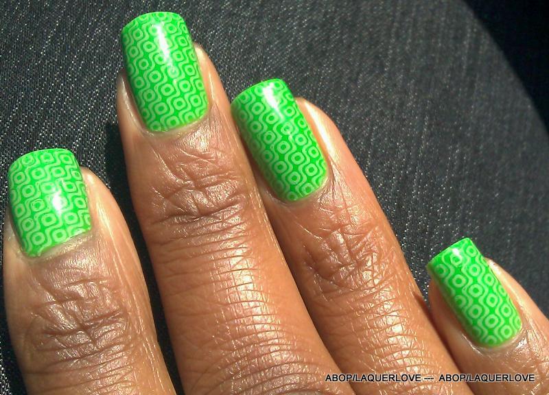 This is my first manicure with a neon-colored nail polish, and I liked it better stamped!