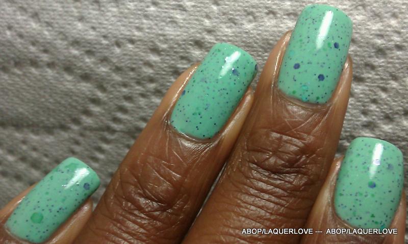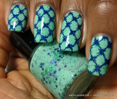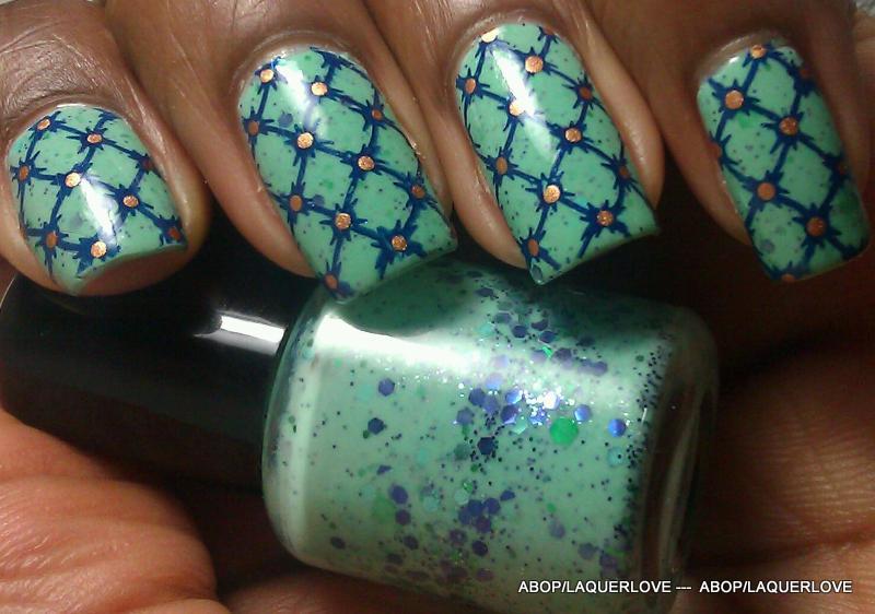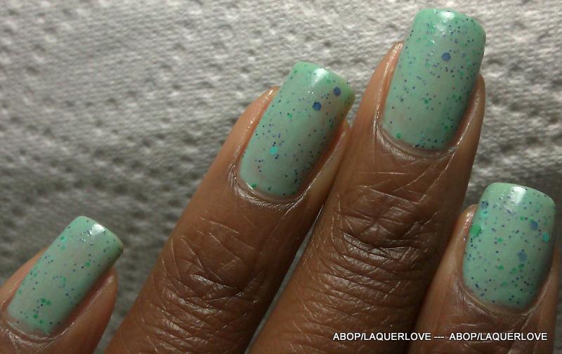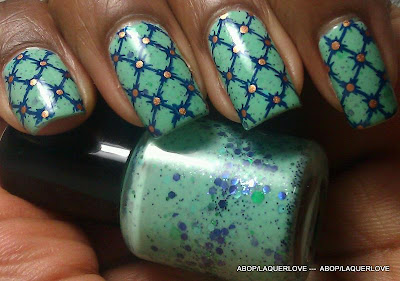ABOP Franken = Cherimoya - Diamond Salad + Cherimoya - Green + Love & Beauty - Indigo + LA Girl Glitter Addict - Nostalgic + Love & Beauty - Mint + Kleancolor - Bikini Green.