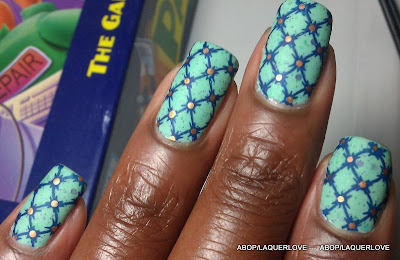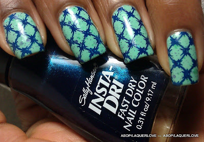** Me decidí a probar la marca Deborah Lippmann cuando descubrí los conjuntos seleccionados eran a la venta en QVC. Este verde es hermoso, pero la fórmula no era fácil de trabajar. Espero que el próximo que intento de la marca se aplicará mejor. He utilizado el esmalte Quirius como un acento y más tarde estampado ambos con un esmalte de Sally Hansen Insta-Dri y DRK placa B.