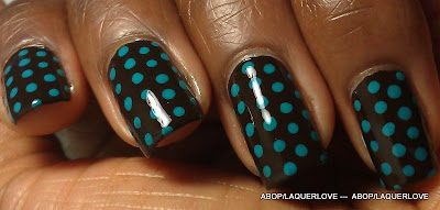 It was difficult for me to photograph this color accurately. In the bottle it looks more green, but on the nail is is teal. This dries matte. I did some quick nail art the next day that I didn't like at all :(