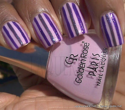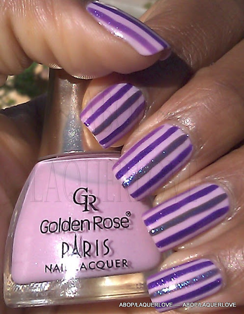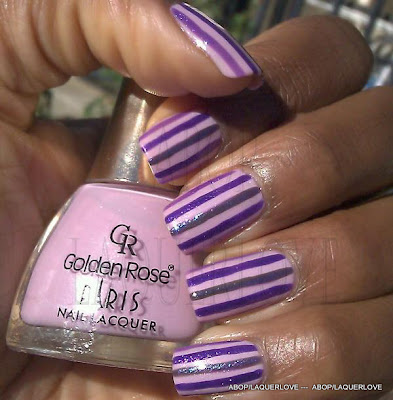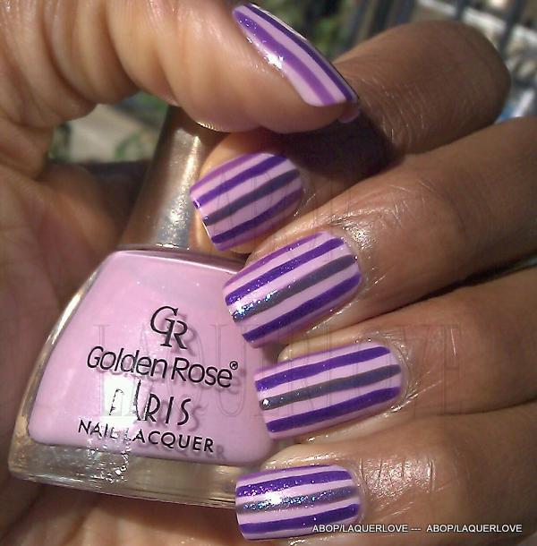 Stripes (Bandas): Golden Rose Paris - #223 (dk grey), Golden Rose Paris Magic - #307(light purple shimmer with blue flash - also put over the grey line in the middle) and #311 (darker purple shimmer)
