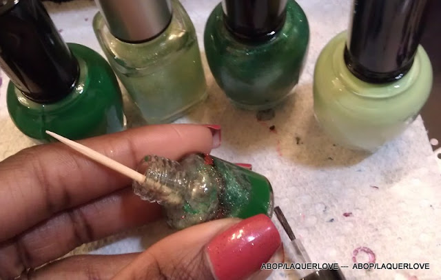 Abop Franken = Various Kleancolor green polishes + black glitter + orange glitter